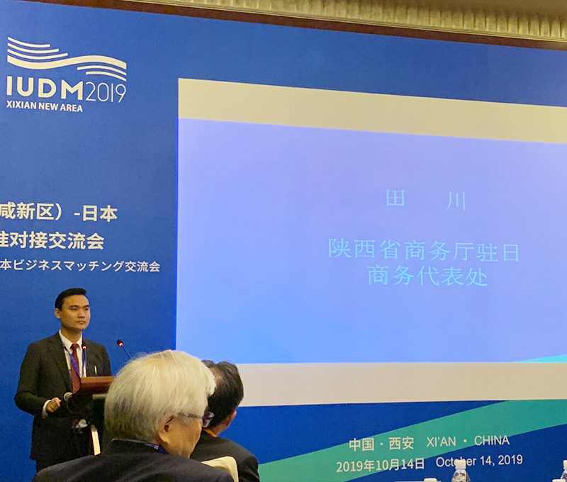 陝西省は中国内陸の中心に位置し、人口3864万人を有し、面積は20.58万平米の一帯一路の起点となる省で、陝西省商務庁駐日本商務代表処は日中友好・経済交流促進を目的として昨年発足した日本出先機関でございます。